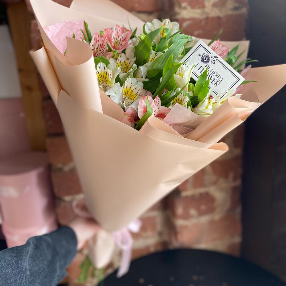 Альстромерия – 7 шт.Лента – 1 шт.Упаковка дизайнерская – 1 шт.