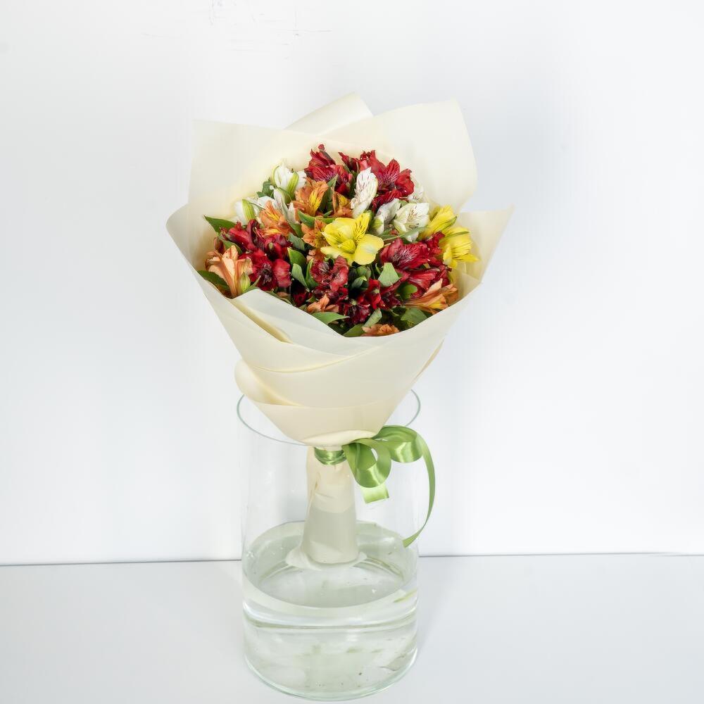 Альстромерия – 17 шт. Открыточка с вашими пожеланиями – 1 шт. Упаковка дизайнерская – 1 шт.