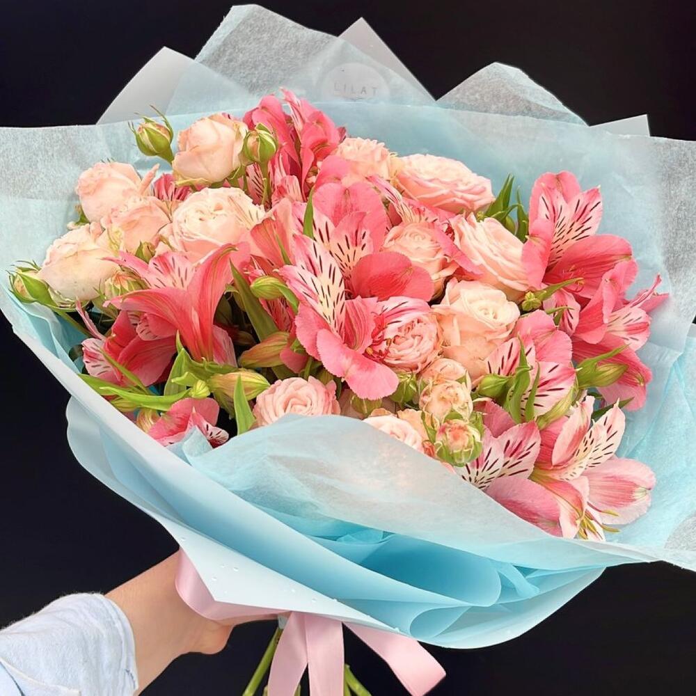 Альстромерии, Гортензии, Кустовые розы, Пионовидные розы, Розы