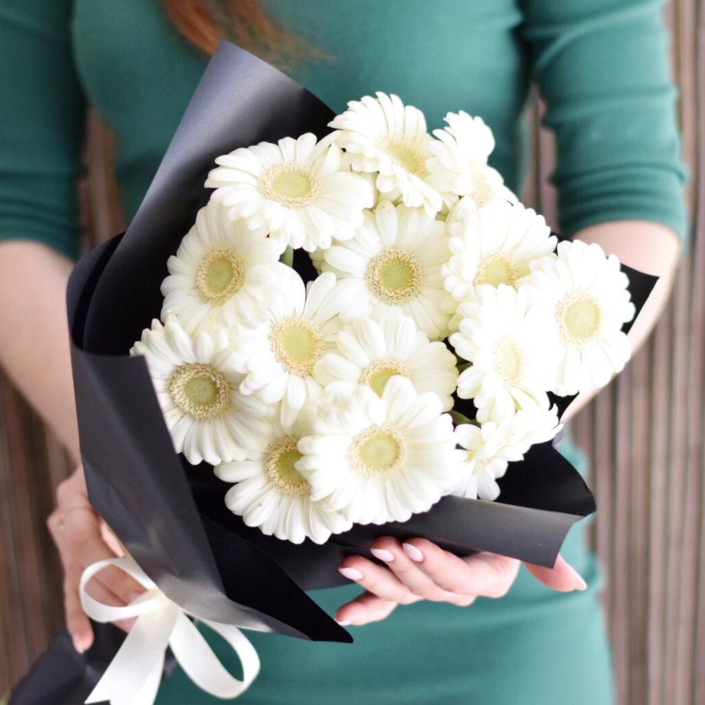 Букет из 15 белых мини гербер в упаковке "Рикки Мартин"