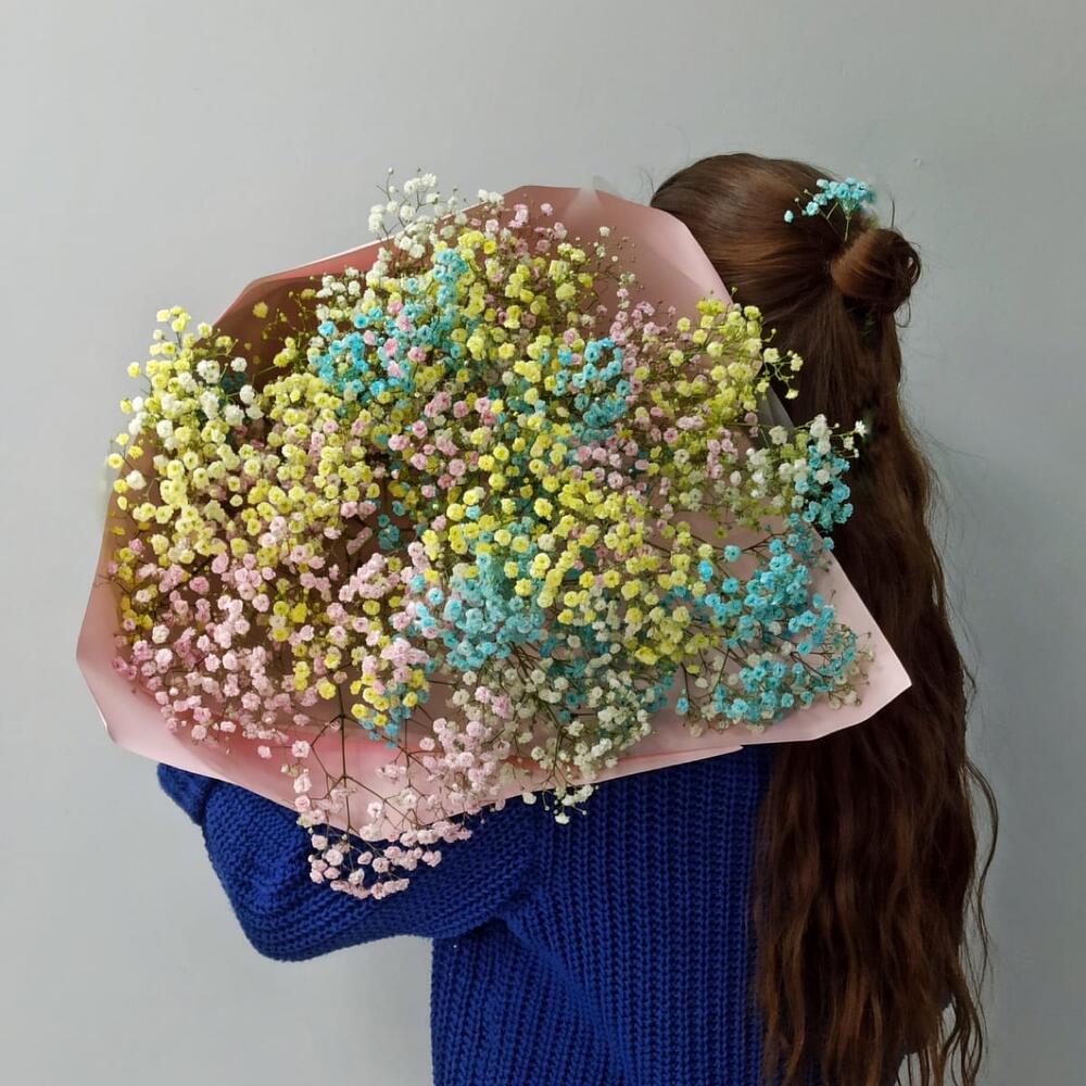 Букет из цветных гипсофил а стильной упаковке