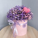 “Сиреневый туман” – композиция из гипсофилы в шляпной коробке