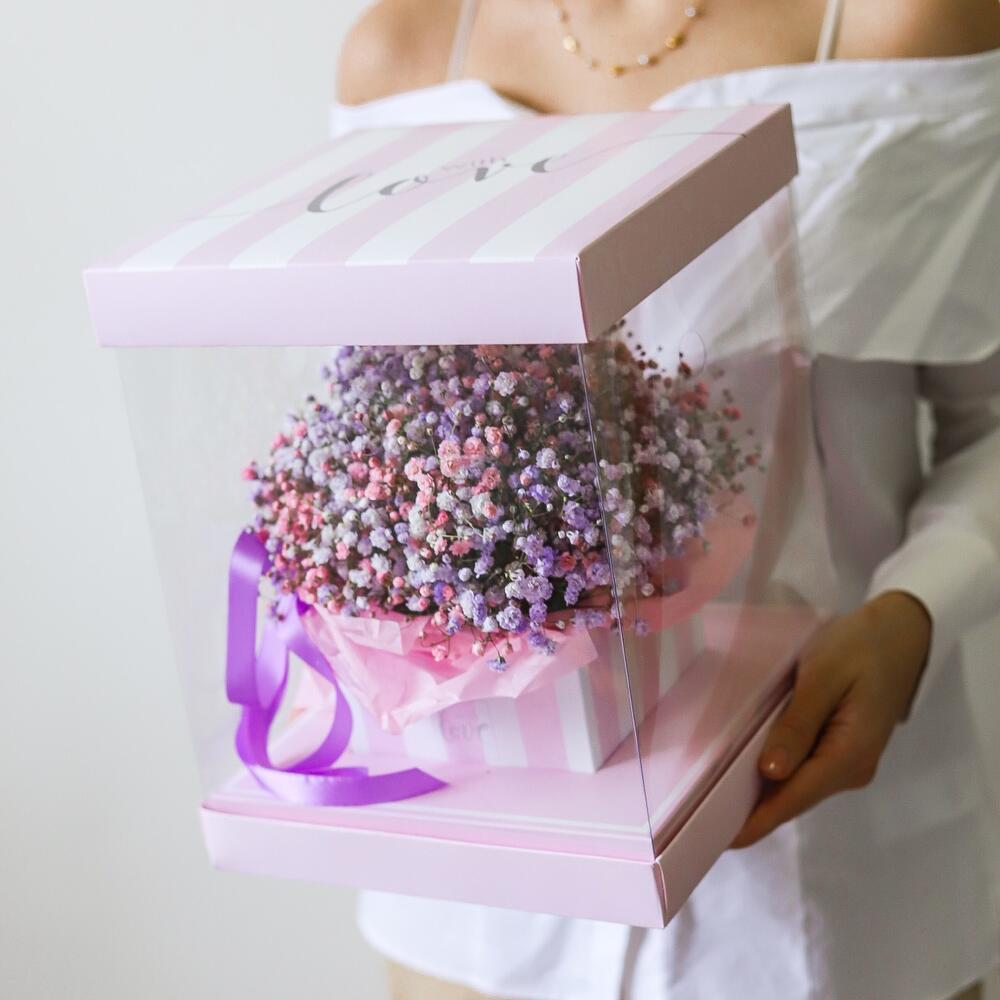 Гипсофила – 5 шт.Оазис флористический – 1 шт.Лента атласная – 2 шт.транспортировочная упаковка – 1 шт.инструкция по уходу за цветами – 1 шт.