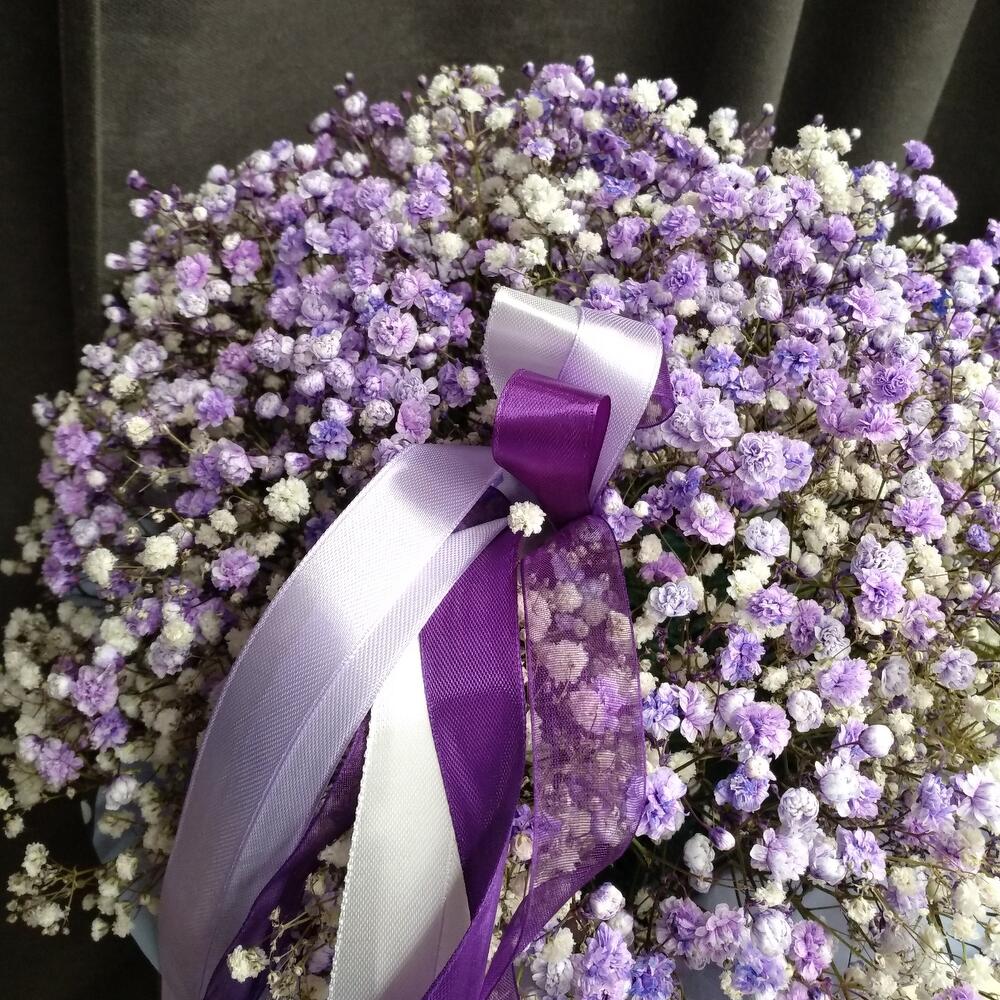 Гипсофила – 15 шт.Коробка шляпная – 1 шт.Оазис флористический – 1 шт.Упаковка дизайнерская – 2 шт.Лента атласная – 3 шт.