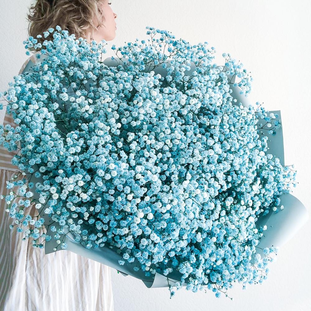 гипсофила цветная – 17 шт.Пленка корейская – 3 шт.Лента атласная – 1 шт.инструкция по уходу за цветами – 1 шт.
