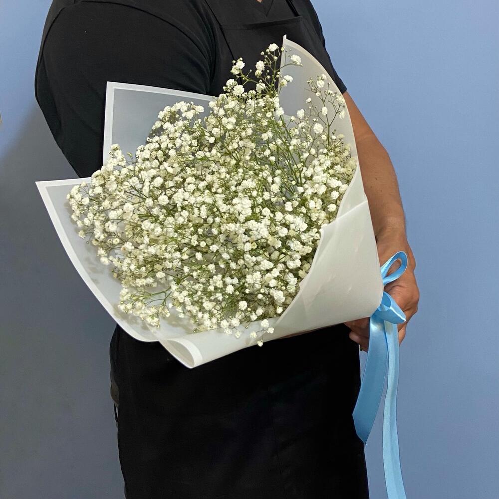 Гипсофила – 3 шт.Лента атласная – 1 шт.Упаковка дизайнерская – 1 шт.