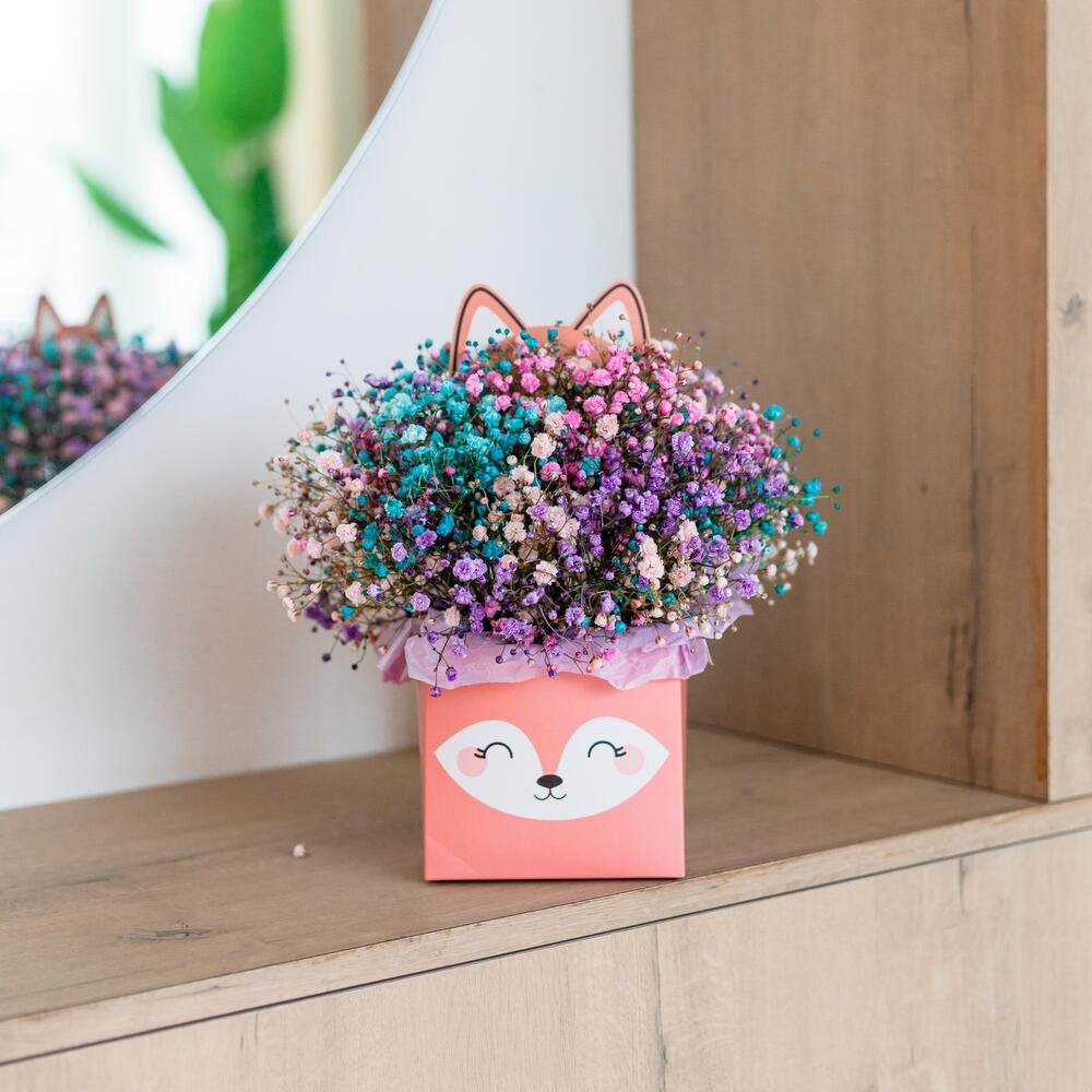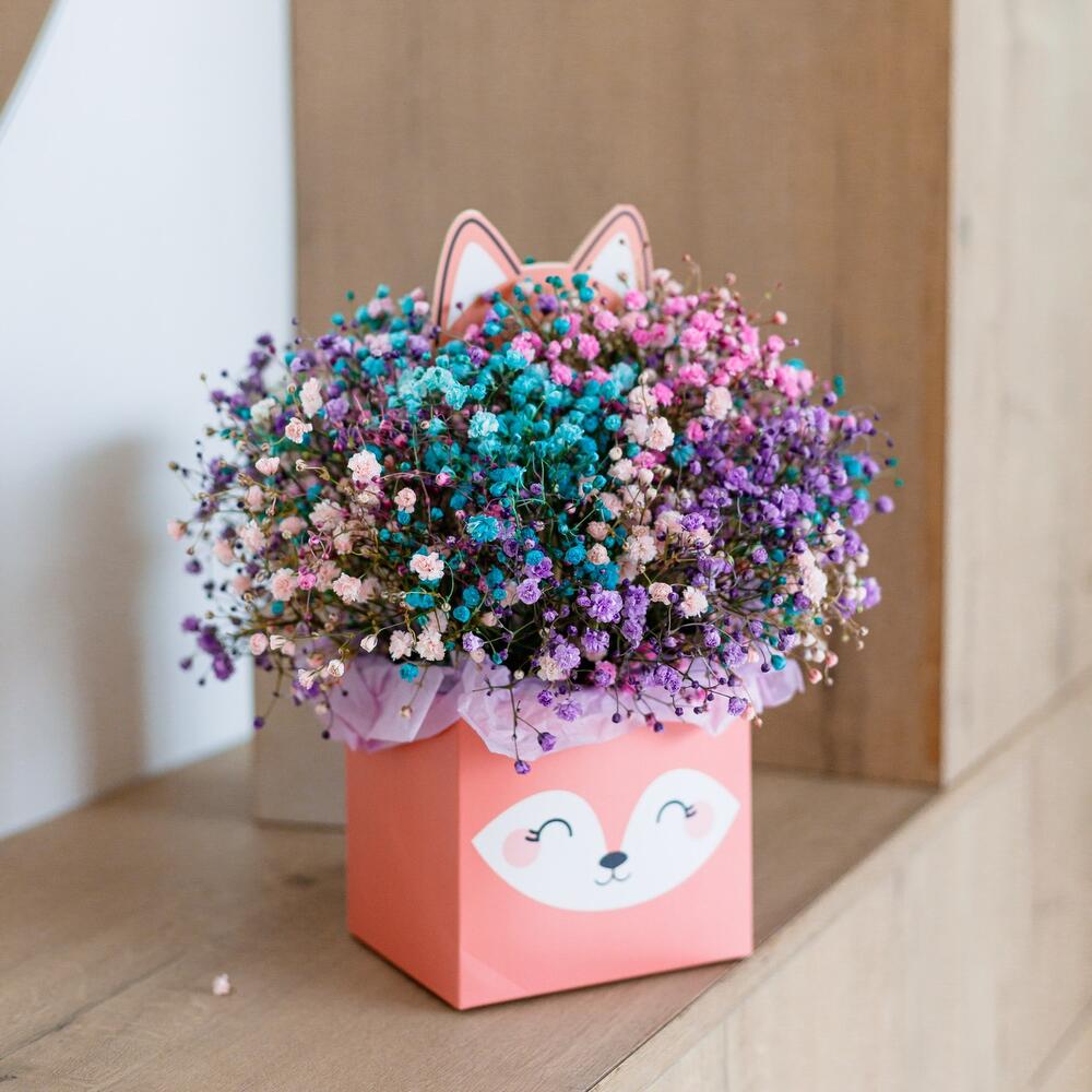 Гипсофила – 5 шт.коробка лисичка – 1 шт.Оазис флористический – 1 шт.Тишью – 4 шт.