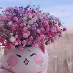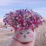 Мини композиция из радужной гипсофилы в керамическом кашпо «Котик»