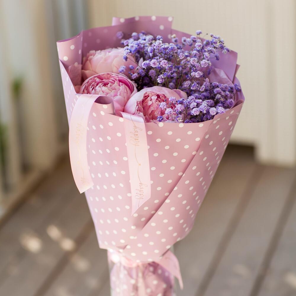 9 сиреневых пионовидных роз