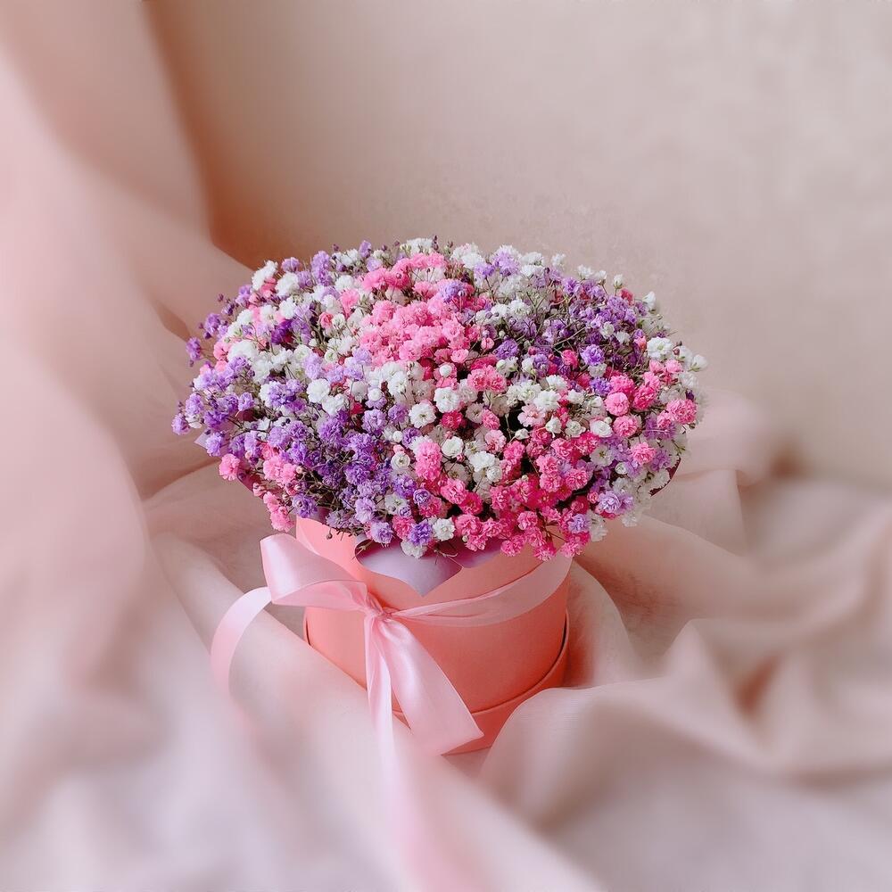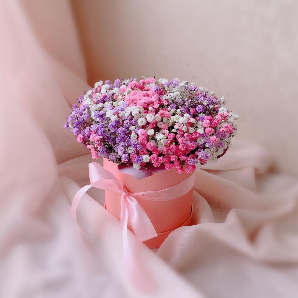 Очаровательная композиция из изысканных свежих цветов.Наполнена множеством соцветий радужной гипсофилы. Собрана в стильной шляпной коробке.Композиция из гипсофилы – необычный подарок, который удивит своей невероятной стойкостью, при правильном и простом уходе.❤️ Ставить композицию в прохладном месте, избегая отопительных приборов и прямых солнечных лучей. ❤️ Подливать немного воды в серединку.Гипсофила не вянет, а становится сухоцветом, сохраняя свой вид. Поэтому композиция продолжит радовать ещё очень долго!Почему выбирают нас? – Работаем на качество. – Бережно упакуем в транспортировочную пленку, чтобы защитить во время доставки от любых погодных условий. – Приложим инструкцию, как правильно ухаживать за цветамиСохраняйте товар в подборках, чтобы не потерять
