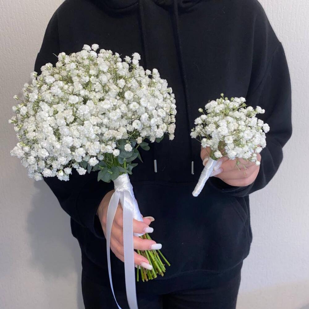 Букет эустомы с гипсофилой