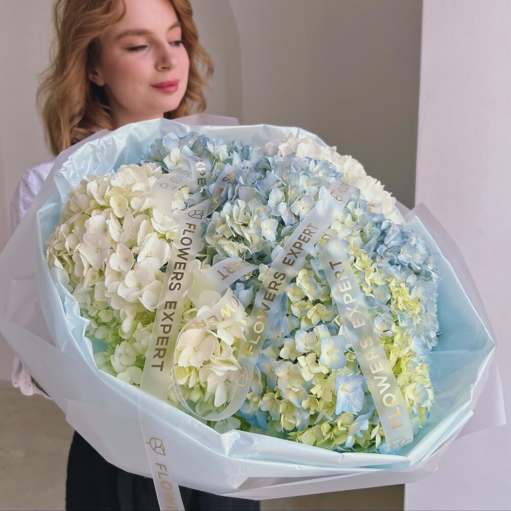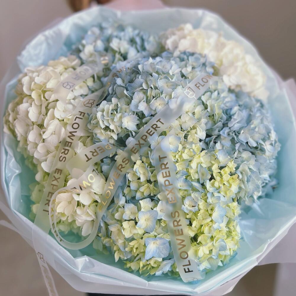 Букет из 7 гортензий “BLUE ARCTIC”