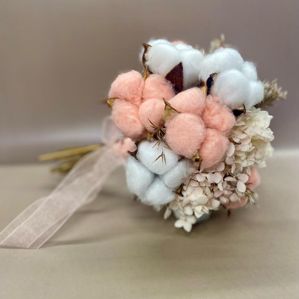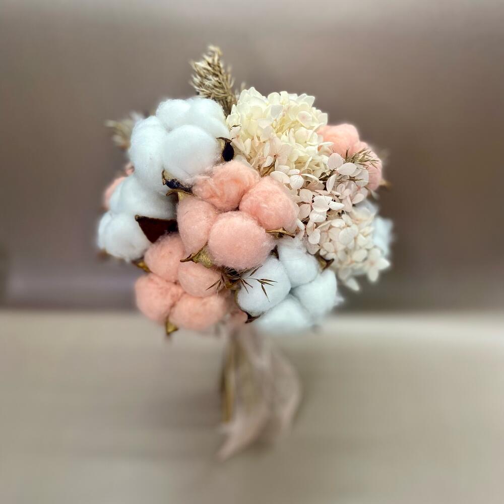 Хлопок – 12 шт.гортензия стабилизированная – 1 шт.Лента – 1 шт.