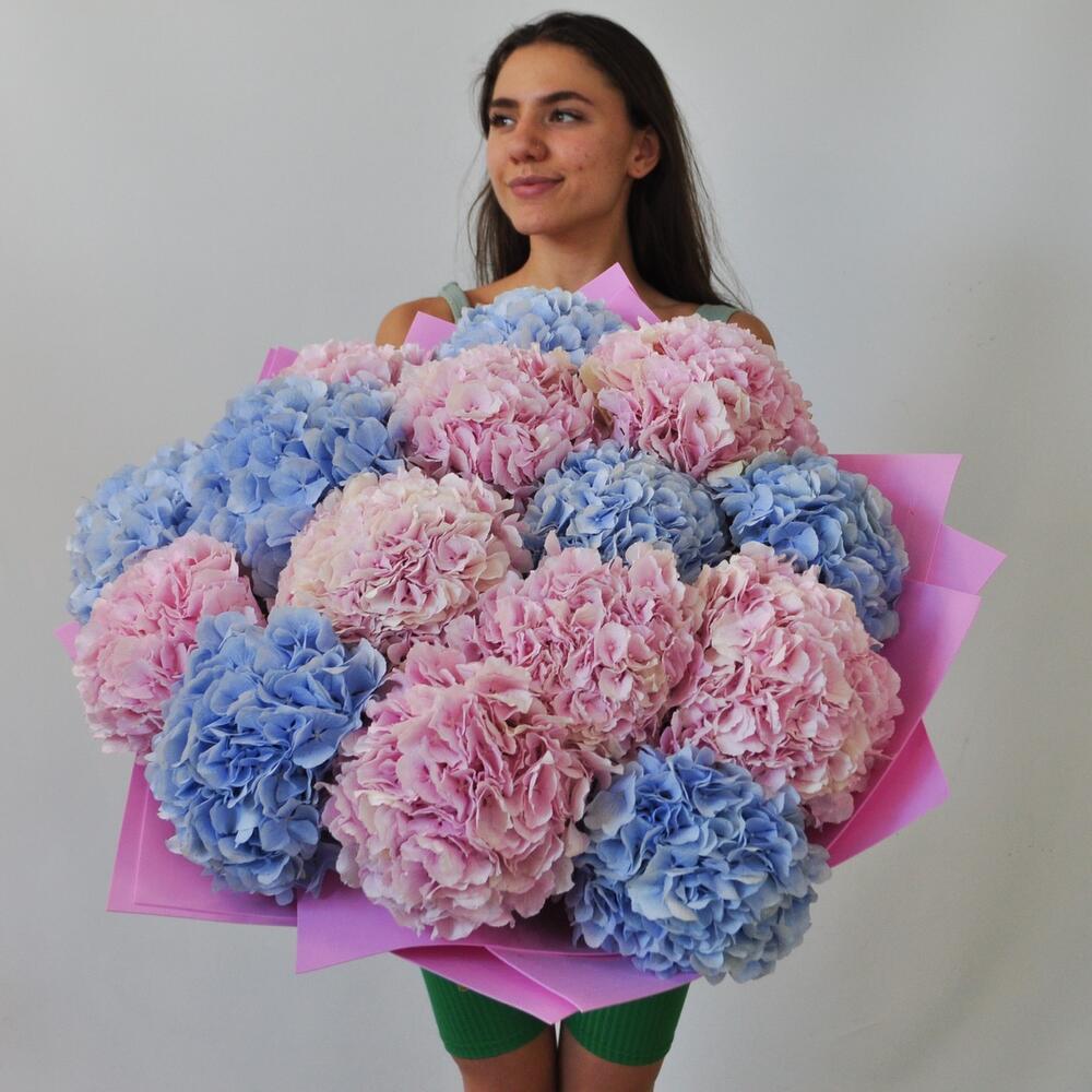 “Эвкалиптическая роскошь” гортензия и пионовидная кустовая роза