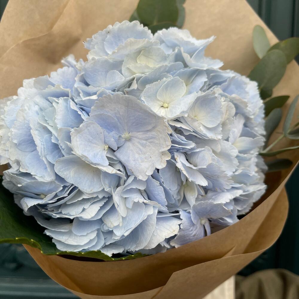Гортензия с эвкалиптом в крафте