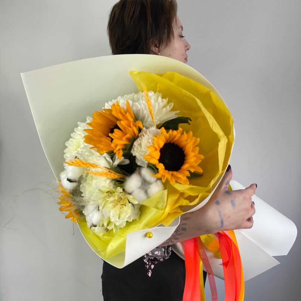 Авторский букет с подсолнухами