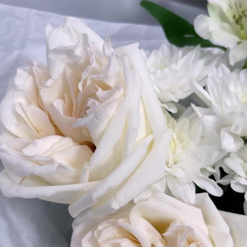 Белый букет с ароматными пионовидными розами