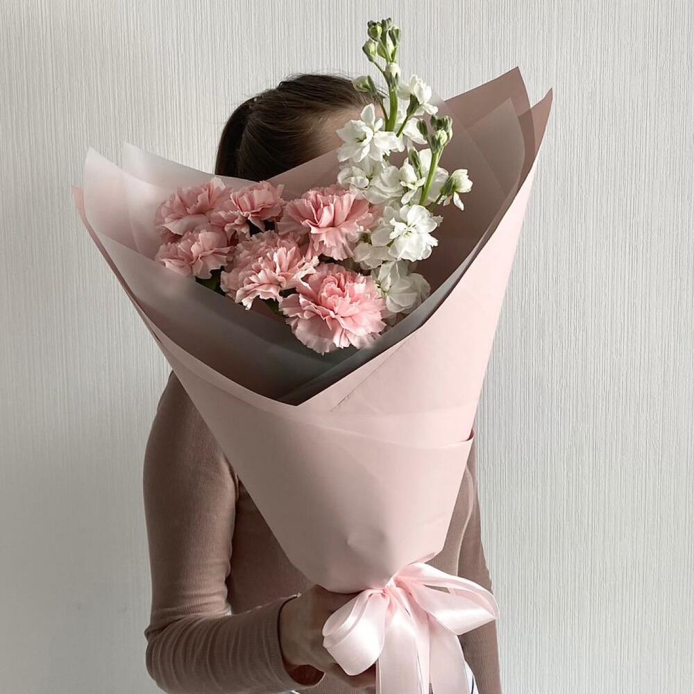 Букет из диантусов и маттиолы