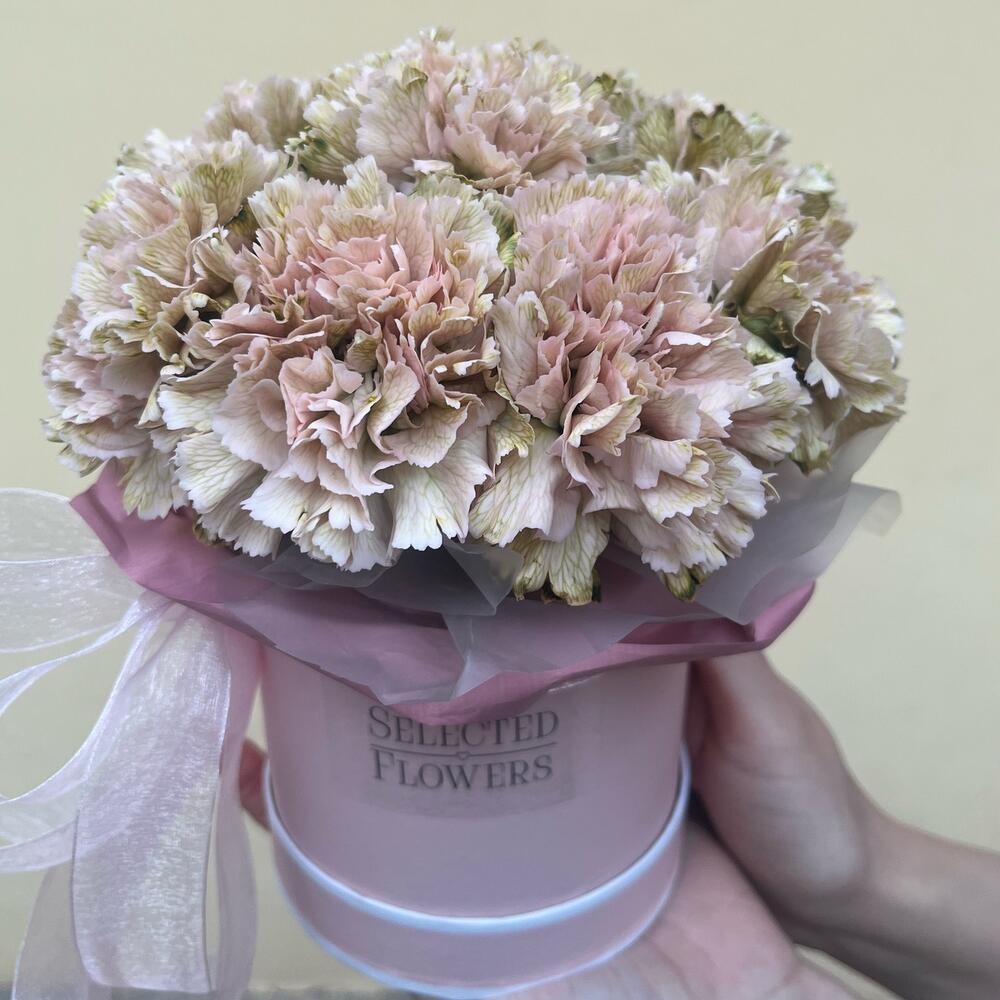 Гипсофила радужная в розовой коробке. Букет 133 ALMOND ROSES