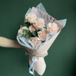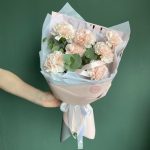 Кремовый моно букет из гвоздик и эвкалипта