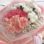 Гипсофила – 1 шт.Лента атласная – 2 шт.Тишью – 6 шт.Пленка матовая – 4 шт.Хлопок натуральный – 5 шт.Стифа – 5 шт.диантус розовый (гвоздика ) – 9 шт.