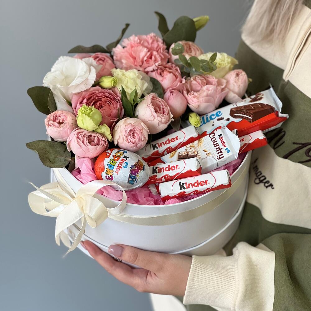 "Атлас☁️" - цветочная композиция с зефиром в деревянном ящике