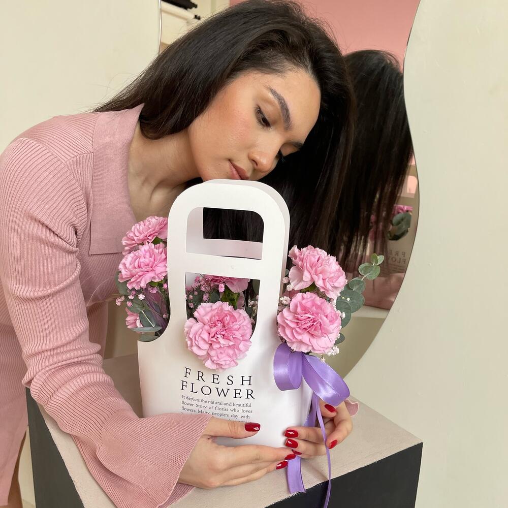 Розовые диантусы в стильном пакете