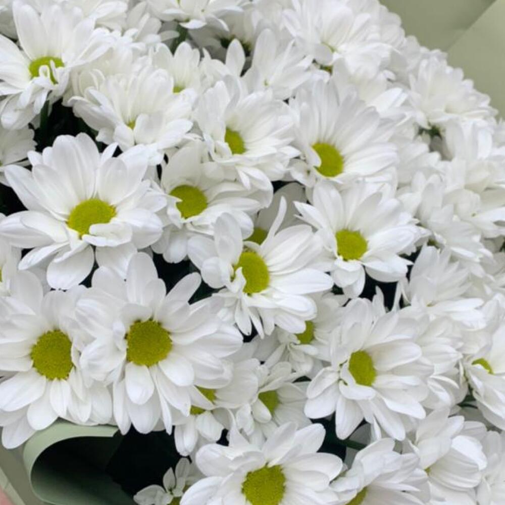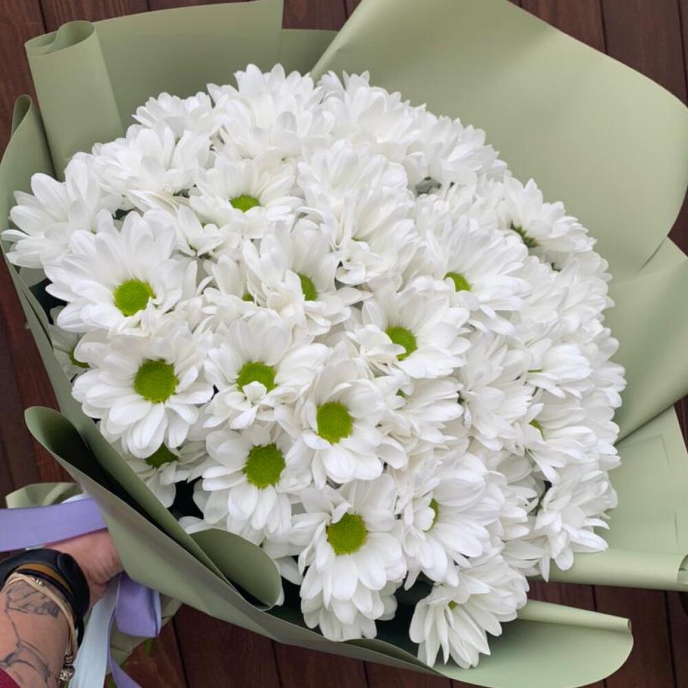 Кустовая хризантема – 11 шт.Упаковка – 2 шт.Лента атласная – 1 шт.