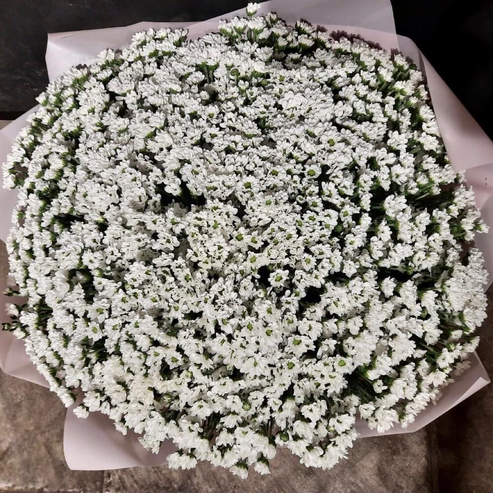 Букет из 25 белых фрезий и эвкалипта в стильной упаковке "Мерриам"