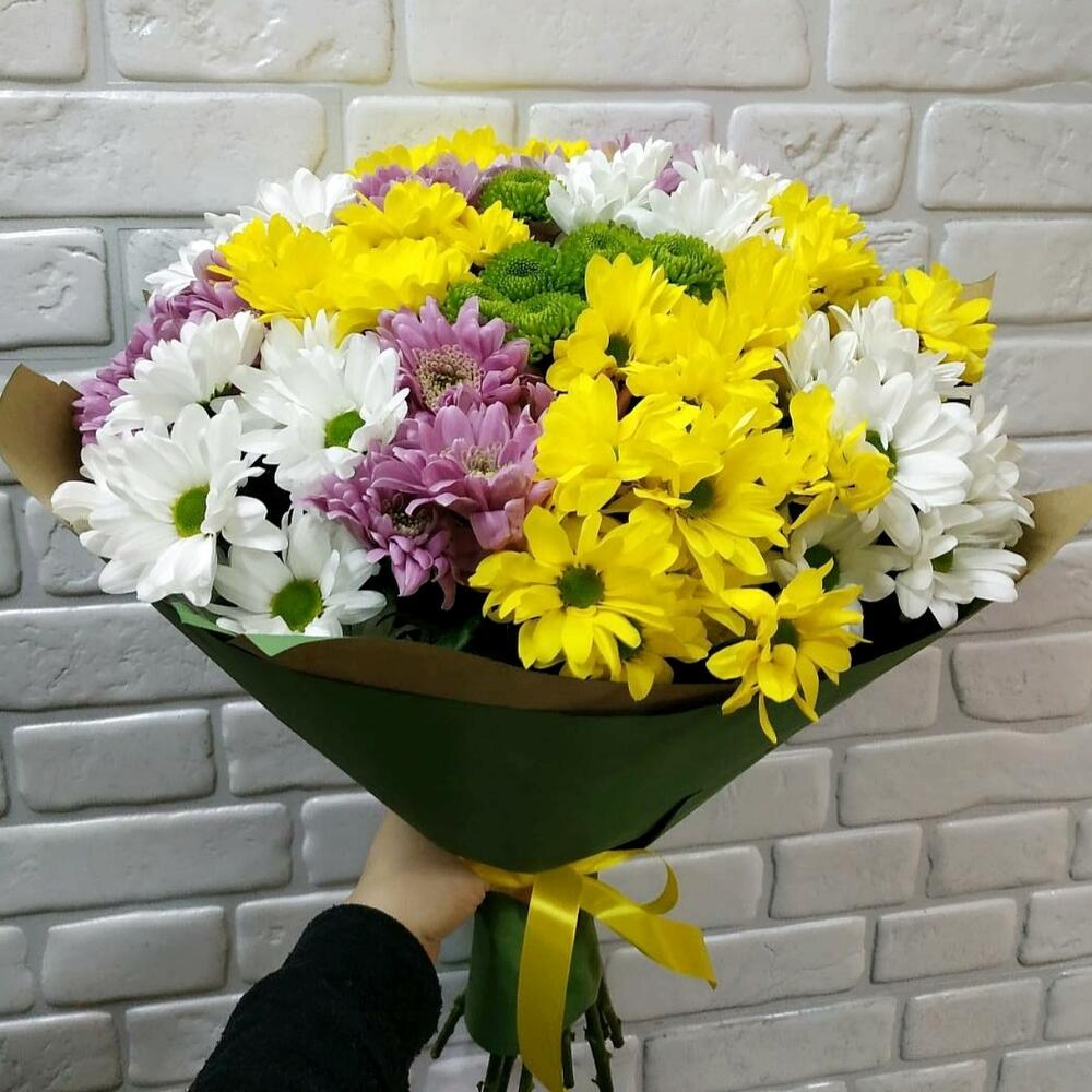 Состав букета: хризантема разноцветная- 19 веток.