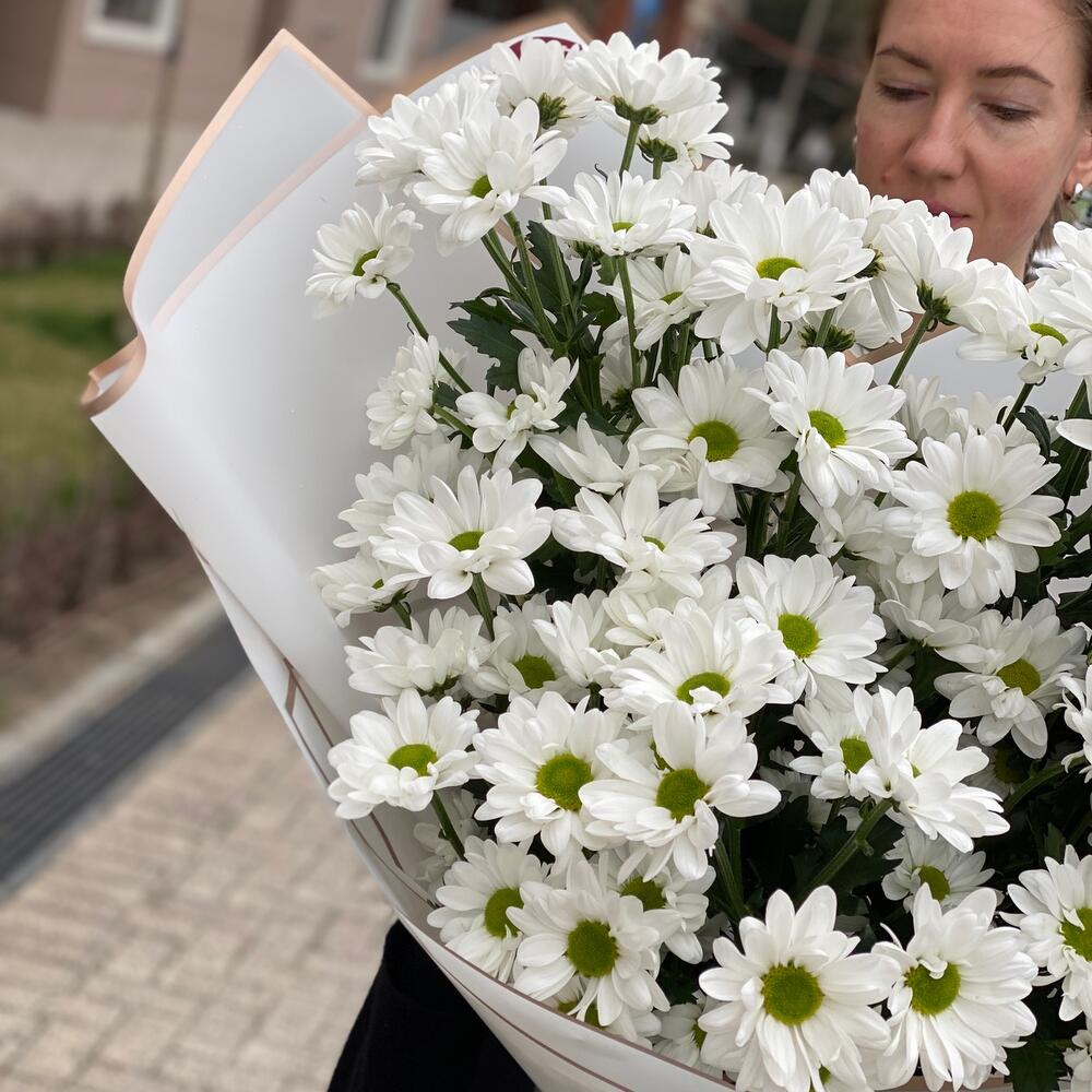 Монобукет белой кустовой хризантемы ромашка 9 шт