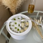 “Атлас☁️” – цветочная композиция с зефиром в деревянном ящике