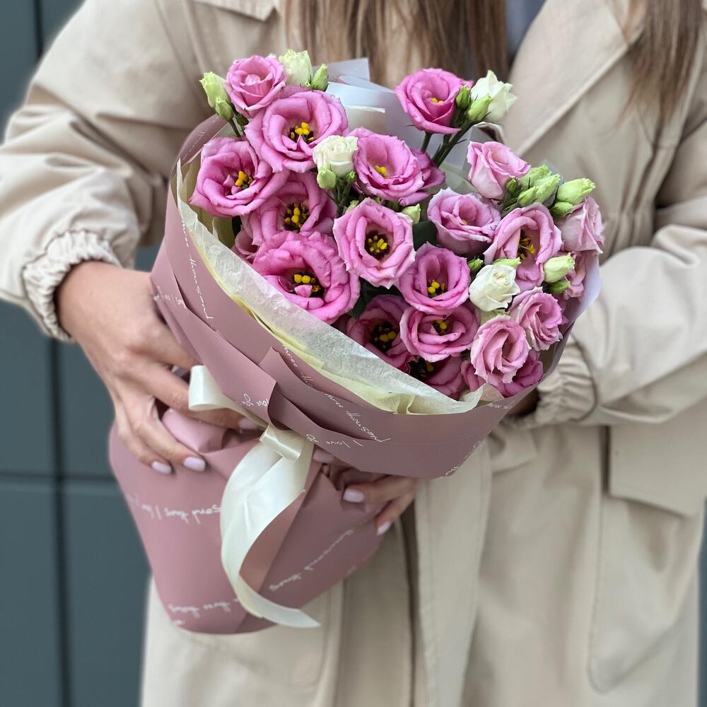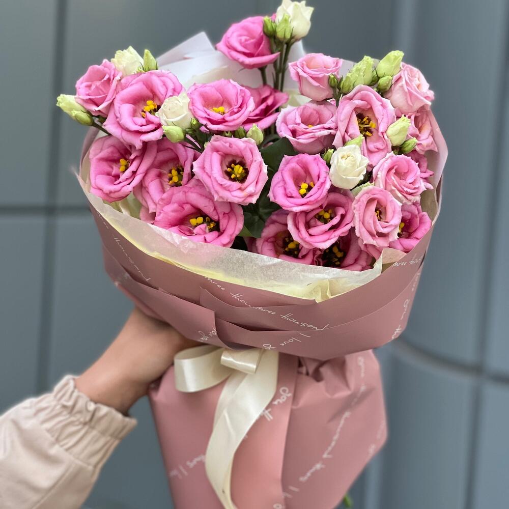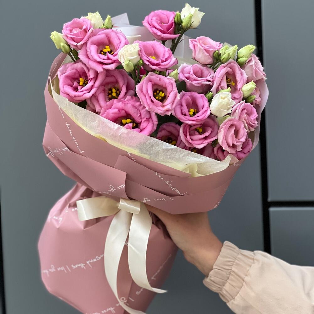Букет из розовой эустомы в оформлении!