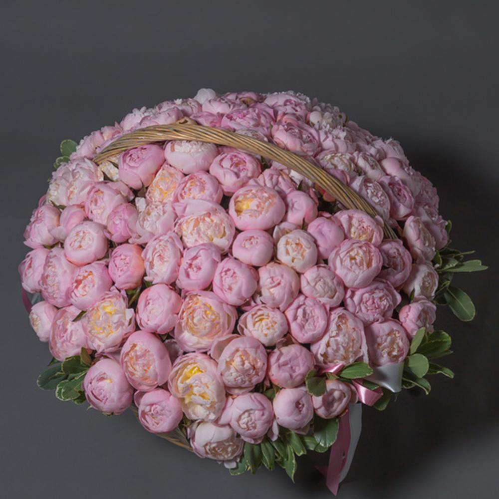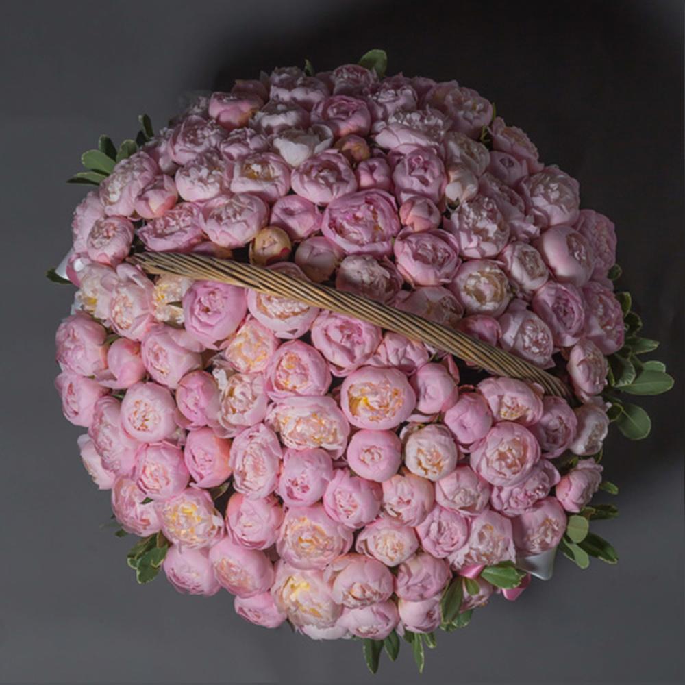 Корзина – 1 шт.Лента – 2 шт.Пион – 101 шт.Оазис – 3 шт.питоспрум – 10 шт.