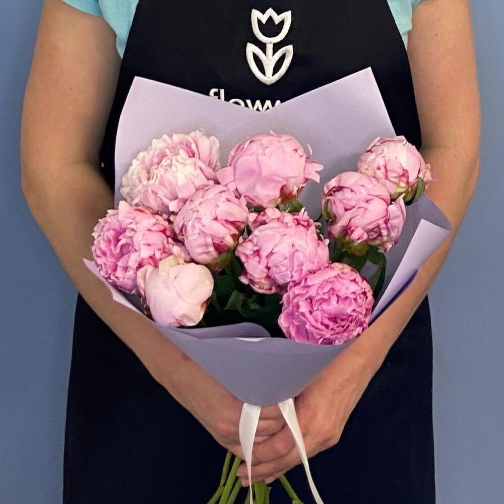 Упаковка – 1 шт.Лента атласная – 1 шт.Пион розовый – 9 шт.
