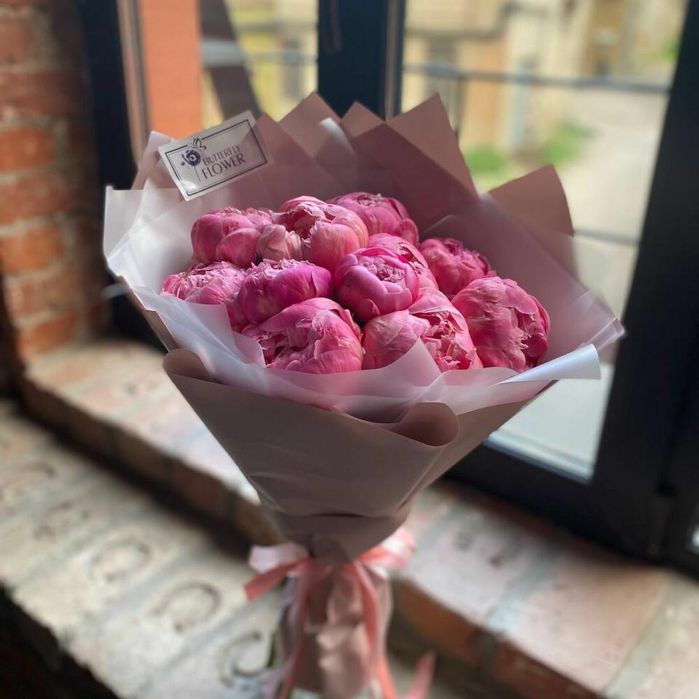 Букет из 11 ярко-розовых пионов в дизайнерской упаковке "Феликс Суприм"