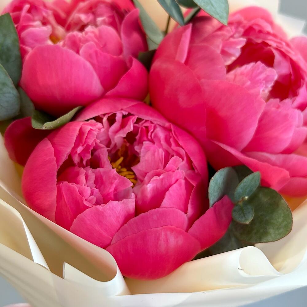 Букет из 3-х коралловых пионов Корол Шарм