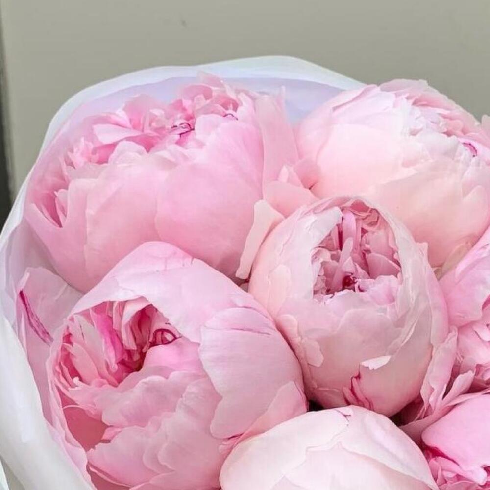 Пион розовый – 7 шт.Упаковка дизайнерская – 1 шт.Лента атласная – 2 шт.Открыточка с вашими пожеланиями – 1 шт.инструкция по уходу за цветами – 1 шт.хорошее настроение – 100 шт.коробка переноска – 1 шт.Кризал – 1 шт.