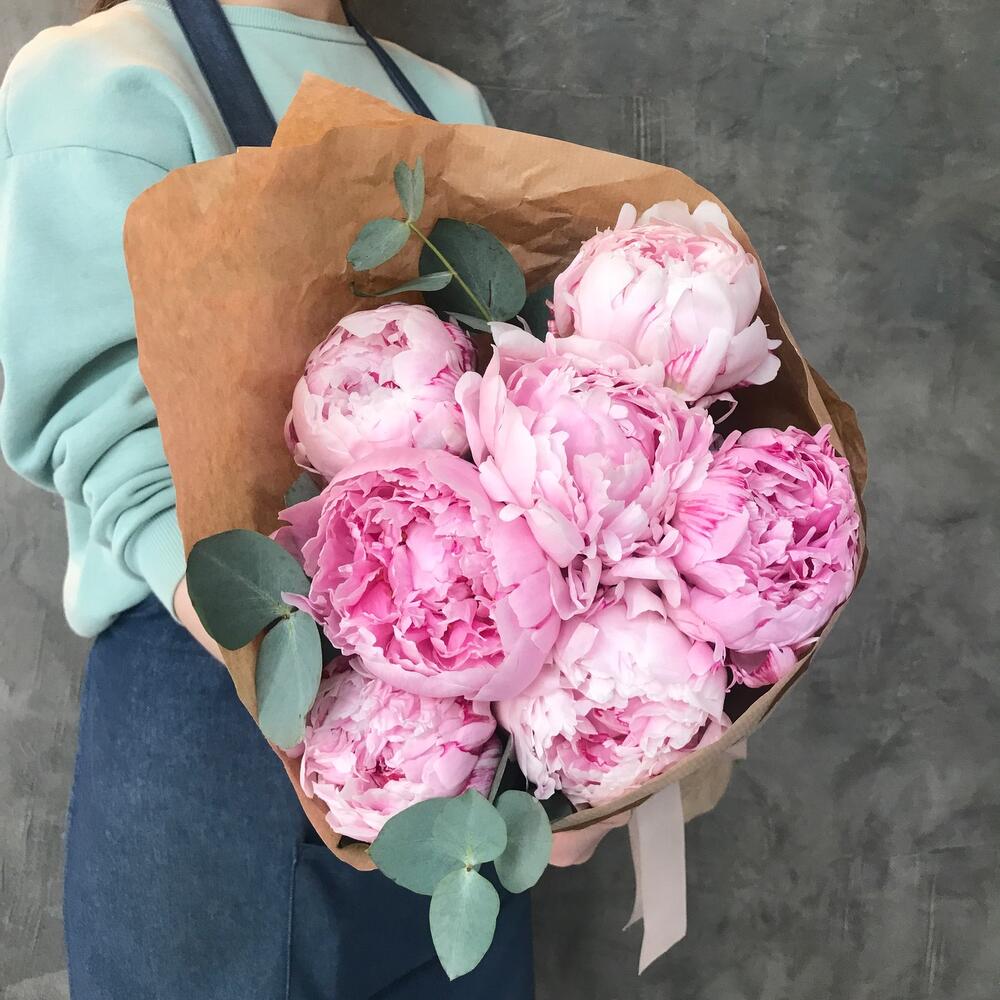 Эвкалипт – 1 шт.Пион Сара Бернар – 7 шт.Упаковка крафт – 1 шт.