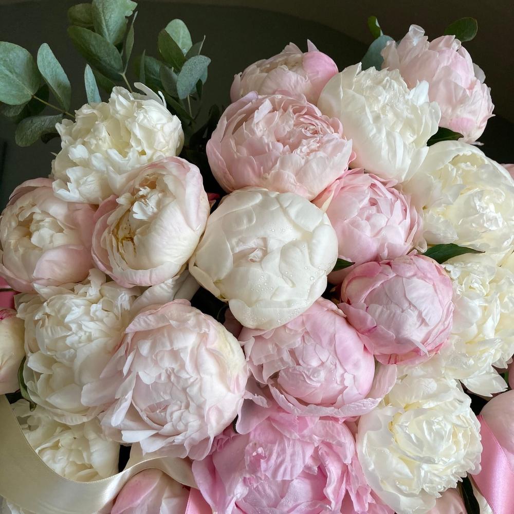 Пион – 31 шт.Эвкалипт – 7 шт.Лента атласная – 2 шт.