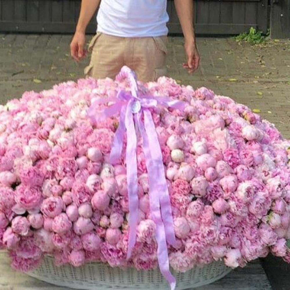 Композиция из 301 пиона в корзине