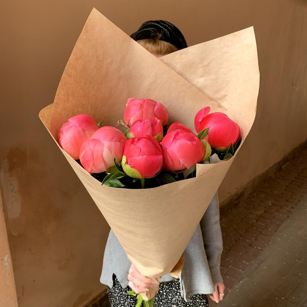 Коралловые пионы 7 шт в крафте