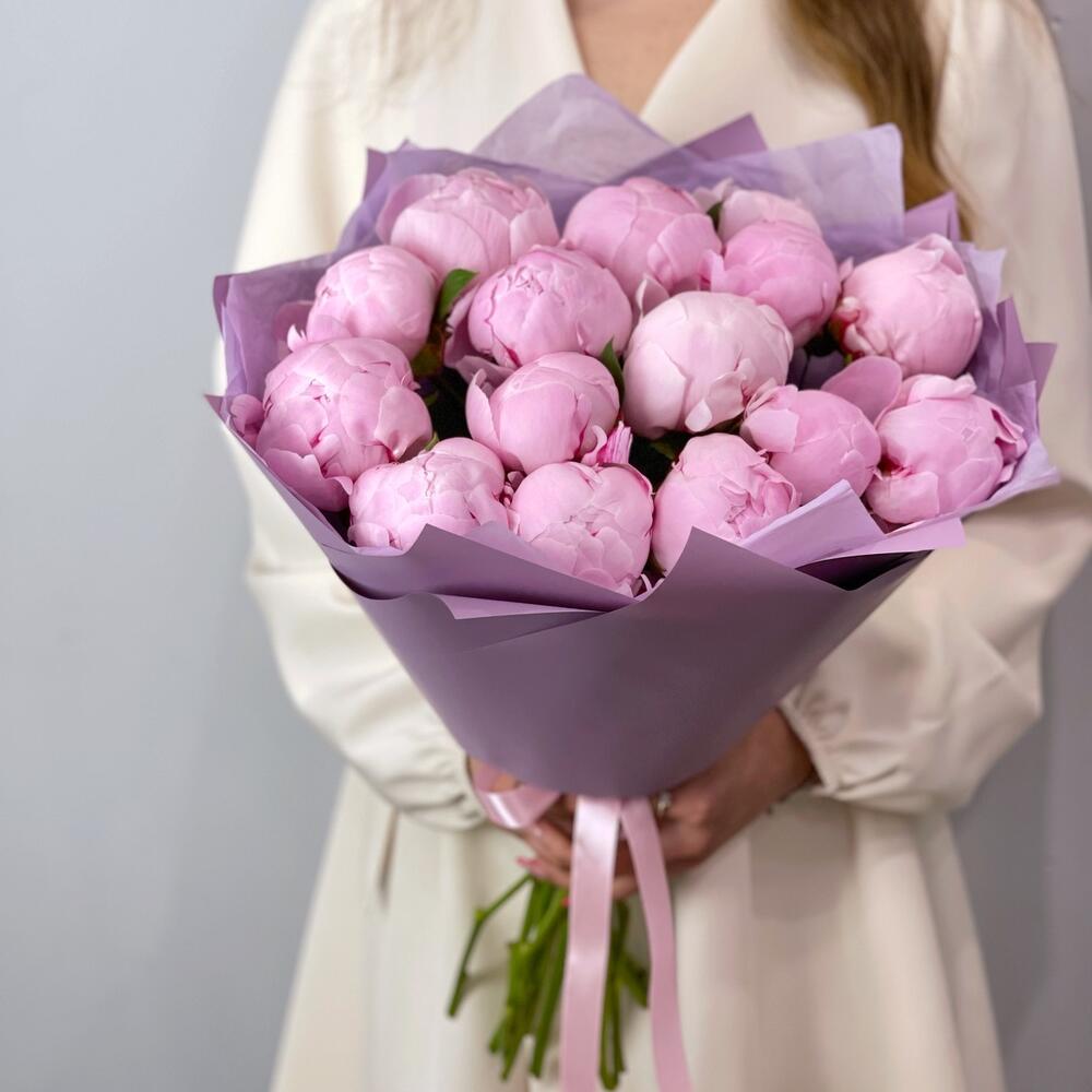 Букет из шикарных ароматных розовых пионов сорта Сара Бернар.Пионы распускаются еще в вазе и будут радовать до 5-7 дней.Степень раскрытия пионов всегда разная, мы можем гарантировать со своей стороны свежесть цветов.К каждому букету мы прикладываем:- открытку с Вашими пожеланиями- инструкцию по уходу за букетом- пакетик кризала для продления жизни цветов