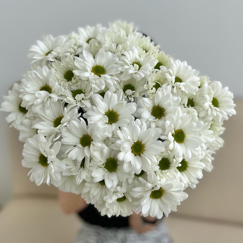 Тишью – 1 шт.Коробка шляпная – 1 шт.Ромашка кустовая – 5 шт.Оазис флористический – 1 шт.