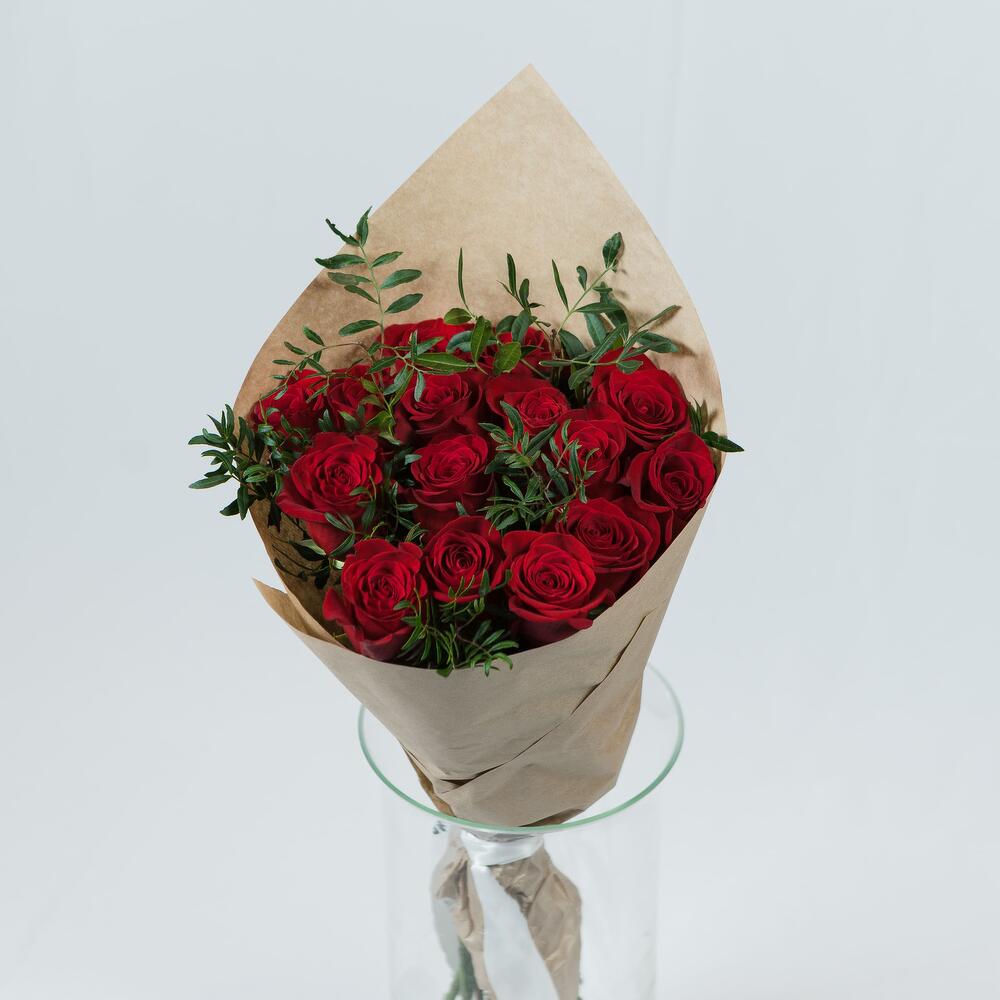 роза explorer 50 см эквадор – 15 шт.фисташка зелень – 3 шт.Крафт дизайнерский – 1 шт.Лента атласная – 1 шт.
