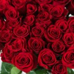 Роза красная – 51 шт.Лента атласная – 1 шт.Пленка прозрачная – 1 шт.