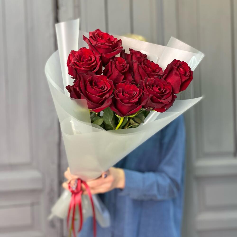 Роза красная Эквадор – 9 шт.Упаковка дизайнерская – 2 шт.Лента атласная – 2 шт.