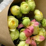 Пионовидная роза , сорт Пиони Баблс в крафт упаковке под атласную ленту
