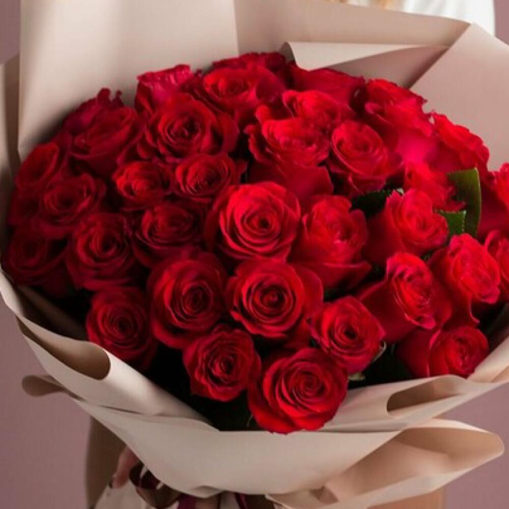 Букет 51 красная роза (Кения) в стильной упаковке