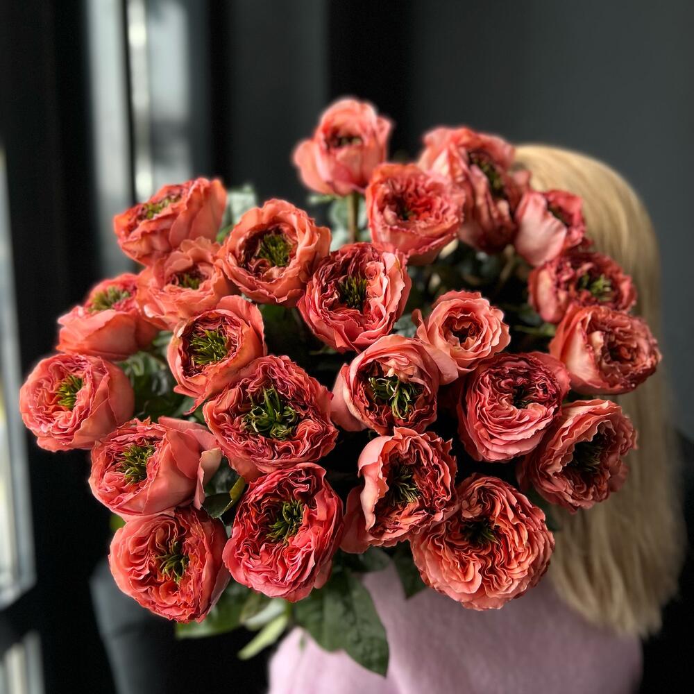 Букет Эксклюзивных пионовидных 25 роз «Мандарин»